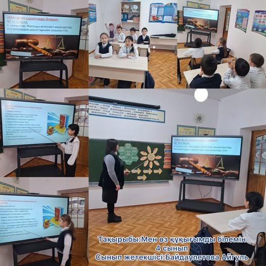 "Мен өз құқығымды білемін" тақырыбында 1-сынып оқушыларымен сынып сағаты өткізілді. Мақсаты: әр оқушы өз құқығын білуі тиіс Сынып жетекшісі: Иманжүсүп Б.Т. #адал_азамат