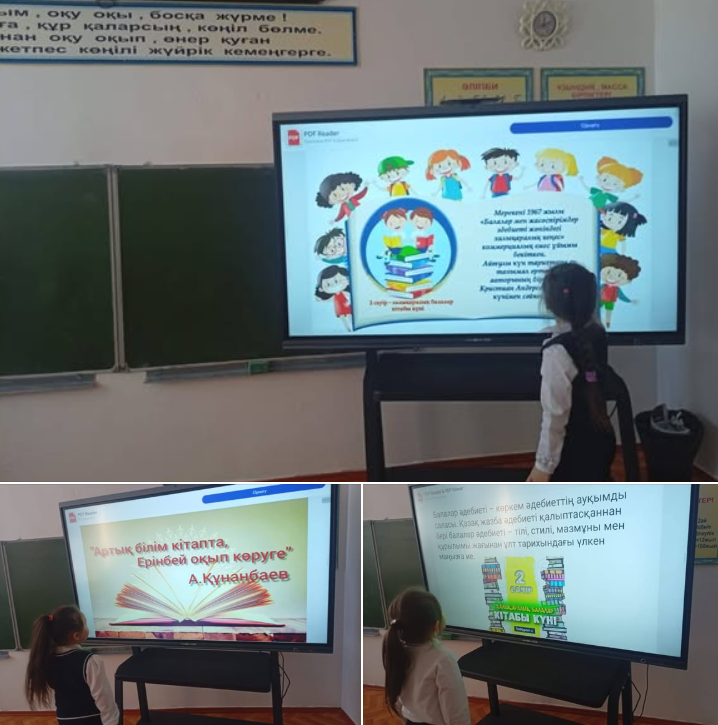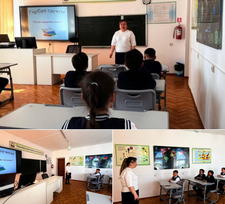 4-сынып оқушыларымен "Кітап – рухани қазына" тақырыбында тәрбие сағаты өткізілді. Мақсаты: Оқушыларға кітаптың адам өміріндегі маңызын түсіндіру; Кітап оқуға деген қызығушылығын арттыру; Рухани байлықты бағалай білуге, білімге құштарлыққа тәрбиелеу; Сөздік қорын, ойлау қабілетін дамыту. Сынып жетекшісі: Байдаулетова А.И. #адал_азамат