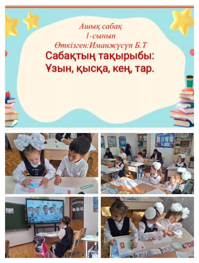 15-қазан күні "Ұзын-қысқа,кең-тар" тақырыбында 1 сыныпта ашық сабақ өткізілді.Сынып жетекшісі Иманжүсүп Ботагөз Темірбекқызы