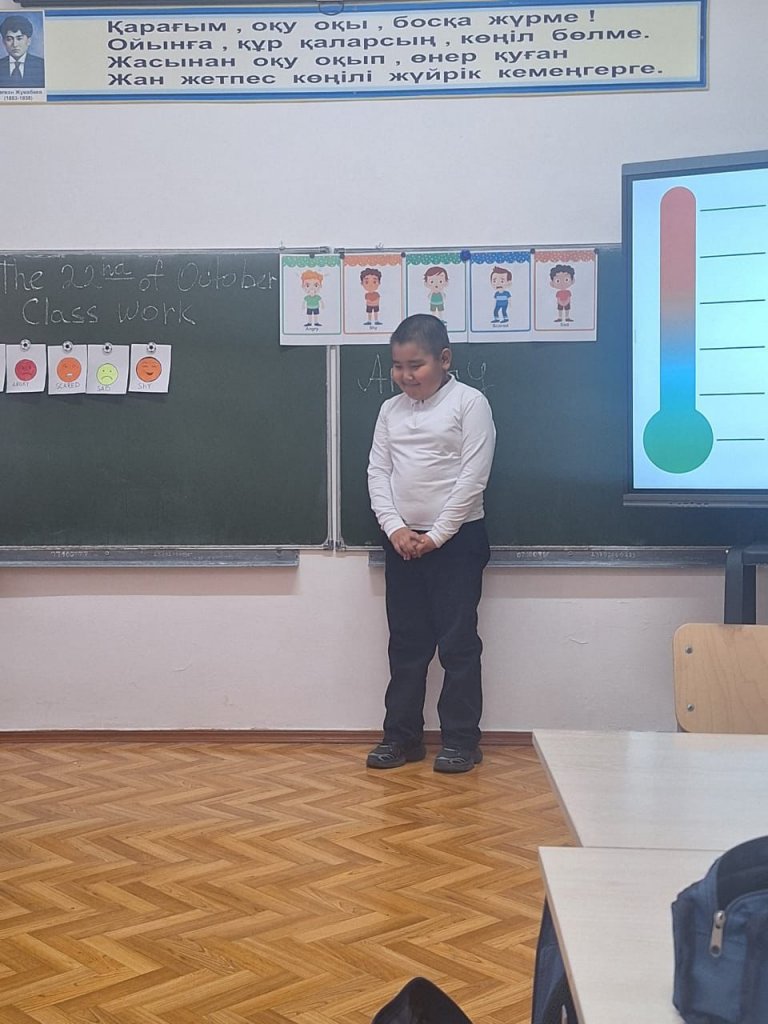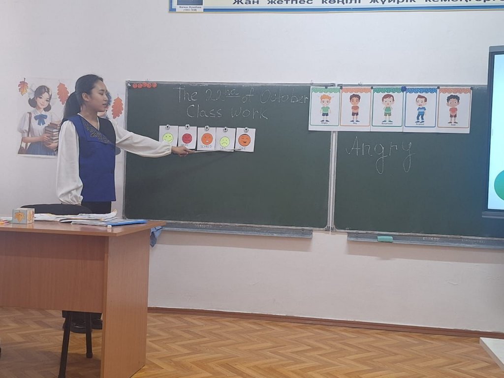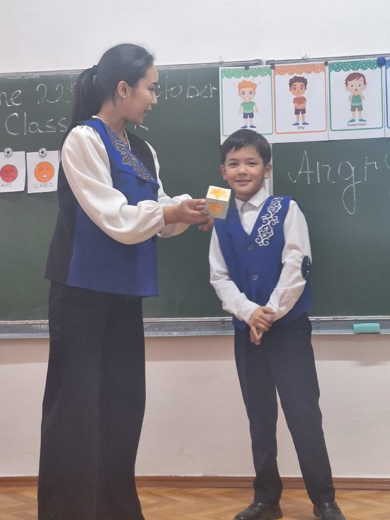 Бүгін мектебімізде бастауыш сынып апталығы аясында ерекше әсерлі, қызықты ашық сабақ өтті. 3-сынып оқушыларымен ағылшын тілі пәнінен "My Feelings" (Менің сезімдерім) тақырыбында сабақты Қабдрахманова Гүлзат өткізді. Сабақтың мақсаты — оқушылардың эмоциялар мен сезімдерді ағылшын тілінде дұрыс білдіруін қалыптастыру, сөздік қорын байыту және коммуникативтік дағдыларын дамыту болды. Мұғалім түрлі көрнекіліктер, сергіту сәттері, интерактивті әдіс-тәсілдер мен ойын элементтерін тиімді пайдалана отырып, балалардың қызығушылығын арттырды. Сабақ барысында оқушылар өз сезімдерін еркін жеткізіп, диалог құруда белсенділік танытты. Топтық жұмыс, сергіту жаттығулары және шығармашылық тапсырмалар оқушылардың тілдік құзыреттілігін арттыруға ықпал етті. Ашық сабақ жоғары деңгейде ұйымдастырылып, қатысушылар тарапынан оң бағаға ие болды. Мұғалімнің шеберлігі мен оқушылардың белсенділігі — сабақтың сәтті өтуінің айқын дәлелі. Осындай мазмұнды сабақтар оқушылардың пәнге деген қызығушылығын арттырып, ағылшын тілін меңгеруге деген ынтасын оятады.